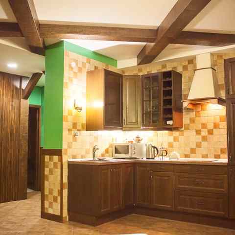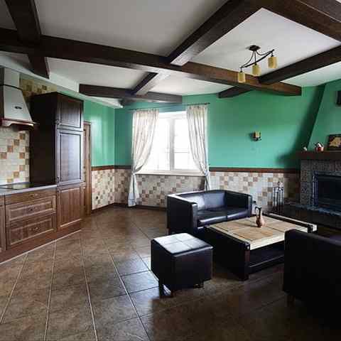 Также здесь находятся два дома: большой и маленький. Переступив порог большого дома, попадаешь в огромный зал для отдыха с камином, который прекрасно согревает гостей холодными вечерами. Но это больше для романтиков. А вот для тех, кто приехал в Юхновку оздоровиться, предназначена сауна с вениками и таким парком, что аж дух захватывает. Парилка (на 8 человек) оснащена светотерапией. Остудиться можно в большом крытом бассейне усадьбы «Юхновский Хутор» или обдав себя из ушата с холодной водой. Продолжить развлечения гости могут за русским бильярдом. По всему дому проведено спутниковое телевидение, есть современная аудиосистема. А после наполненного эмоциями дня каждый гость сможет хорошо отдохнуть – с комфортом размещается на ночлег до 15 человек.