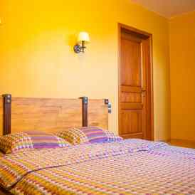 Также здесь находятся два дома: большой и маленький. Переступив порог большого дома, попадаешь в огромный зал для отдыха с камином, который прекрасно согревает гостей холодными вечерами. Но это больше для романтиков. А вот для тех, кто приехал в Юхновку оздоровиться, предназначена сауна с вениками и таким парком, что аж дух захватывает. Парилка (на 8 человек) оснащена светотерапией. Остудиться можно в большом крытом бассейне усадьбы «Юхновский Хутор» или обдав себя из ушата с холодной водой. Продолжить развлечения гости могут за русским бильярдом. По всему дому проведено спутниковое телевидение, есть современная аудиосистема. А после наполненного эмоциями дня каждый гость сможет хорошо отдохнуть – с комфортом размещается на ночлег до 15 человек.